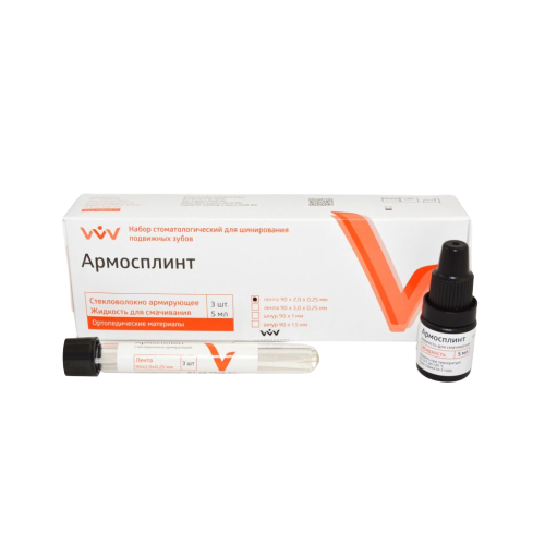 Набор Армосплинт предназначается для работы с ортодонтическими конструкциями. С его помощью фиксируются подвижные зубы, изготавливаются адгезивные протезы, восстанавливается разрушенная зубная коронка.