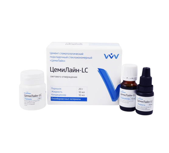 Цемилайн LC - стеклоиономерный подкладочный цемент с повышенным содержанием фтора (20г+10мл+10мл), ВладМива / Россия